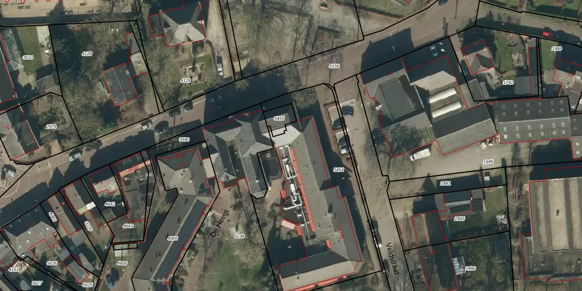 Het perceel waarop Veldstraat 1-K16 staat heeft een oppervlakte van 2101 m². Dit is een zeer groot perceel. De perceeloppervlakte wordt geregistreerd door het Kadaster. Gedetailleerde informatie over de maten van dit perceel kunt u vinden in het rapport Kadastrale kaart met maatvoering van Veldstraat 1-K16.