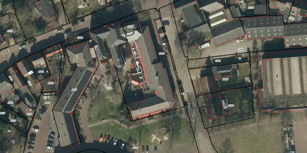 Het perceel waarop Veldstraat 1-K21 staat heeft een oppervlakte van 2101 m². Dit is een zeer groot perceel. De perceeloppervlakte wordt geregistreerd door het Kadaster. Gedetailleerde informatie over de maten van dit perceel kunt u vinden in het rapport Kadastrale kaart met maatvoering van Veldstraat 1-K21.