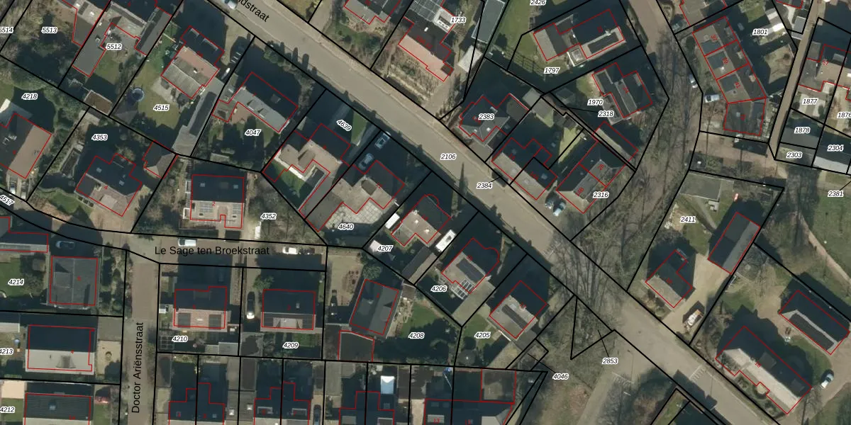 Gebruik de zoekbalk of klik op een perceel voor informatie over de adressen binnen dit perceel.