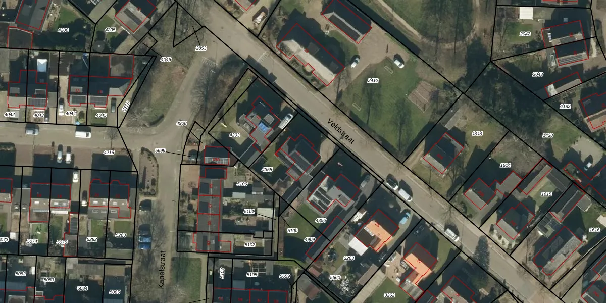 Het perceel waarop Veldstraat 21 staat heeft een oppervlakte van 450 m². Dit is een groot perceel. De perceeloppervlakte wordt geregistreerd door het Kadaster. Gedetailleerde informatie over de maten van dit perceel kunt u vinden in het rapport Kadastrale kaart met maatvoering van Veldstraat 21.