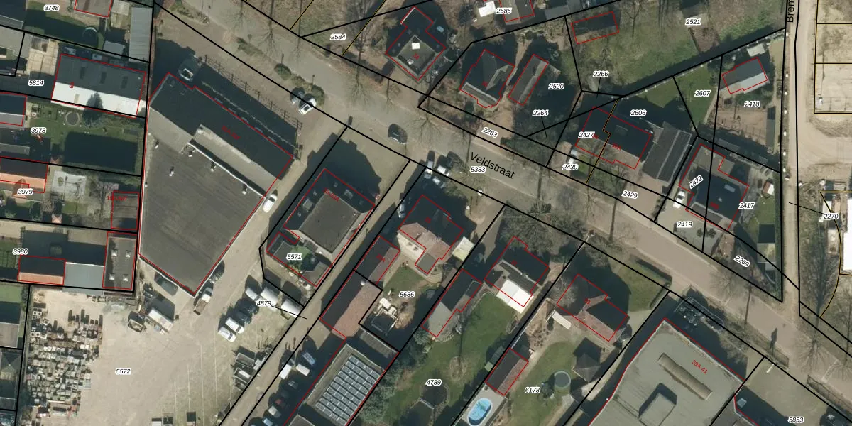 Veldstraat 35 is gelegen op kadastraal perceel GFN00C5686. Deze kadastrale aanduiding is uniek en wordt gebruikt door het Kadaster om eigendomsrechten en andere zakelijke rechten vast te leggen. Het perceel maakt onderdeel uit van de kadastrale gemeente Geffen.