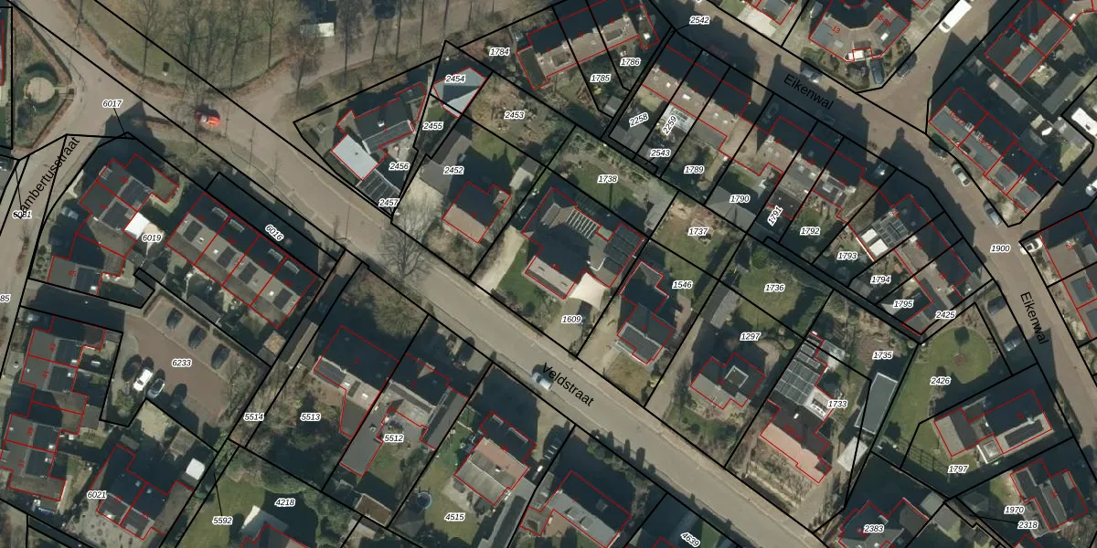 Het perceel waarop Veldstraat 6-A staat heeft een oppervlakte van 596 m². Dit is een groot perceel. De perceeloppervlakte wordt geregistreerd door het Kadaster. Gedetailleerde informatie over de maten van dit perceel kunt u vinden in het rapport Kadastrale kaart met maatvoering van Veldstraat 6-A.