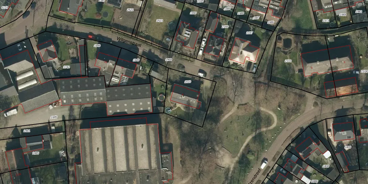 Wilgenstraat 9 is gelegen op kadastraal perceel GFN00B1610. Deze kadastrale aanduiding is uniek en wordt gebruikt door het Kadaster om eigendomsrechten en andere zakelijke rechten vast te leggen. Het perceel maakt onderdeel uit van de kadastrale gemeente Geffen.
