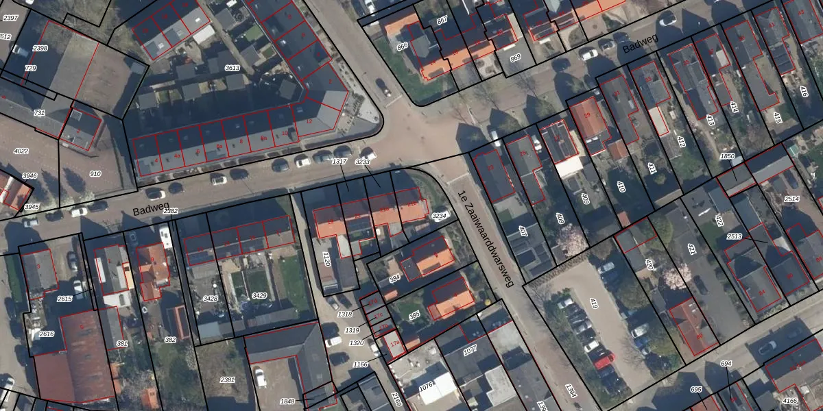 Gebruik de zoekbalk of klik op een perceel voor informatie over de adressen binnen dit perceel.