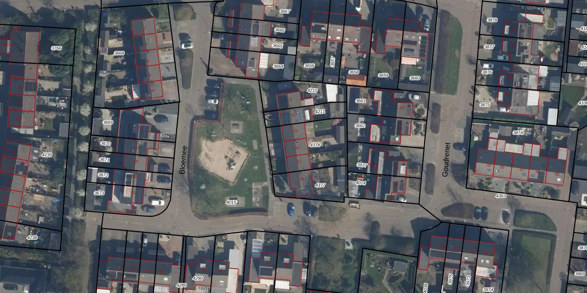 Het perceel waarop Bloemee 15 staat heeft een oppervlakte van 437 m². Dit is een groot perceel. De perceeloppervlakte wordt geregistreerd door het Kadaster. Gedetailleerde informatie over de maten van dit perceel kunt u vinden in het rapport Kadastrale kaart met maatvoering van Bloemee 15.