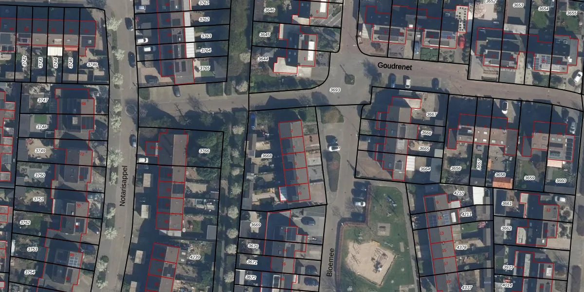 Het perceel waarop Bloemee 4 staat heeft een oppervlakte van 905 m². Dit is een groot perceel. De perceeloppervlakte wordt geregistreerd door het Kadaster. Gedetailleerde informatie over de maten van dit perceel kunt u vinden in het rapport Kadastrale kaart met maatvoering van Bloemee 4.