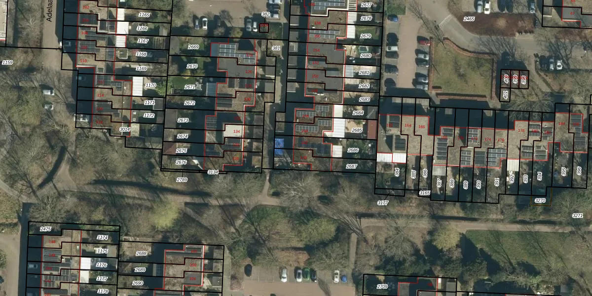 Adelaartlaan 142 is gelegen op kadastraal perceel GDP00F2686. Deze kadastrale aanduiding is uniek en wordt gebruikt door het Kadaster om eigendomsrechten en andere zakelijke rechten vast te leggen. Het perceel maakt onderdeel uit van de kadastrale gemeente Geldrop.