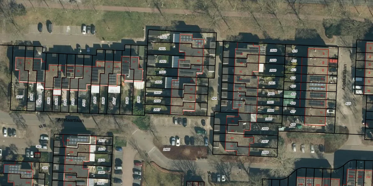Adelaartlaan 35 is gelegen op kadastraal perceel GDP00F2655. Deze kadastrale aanduiding is uniek en wordt gebruikt door het Kadaster om eigendomsrechten en andere zakelijke rechten vast te leggen. Het perceel maakt onderdeel uit van de kadastrale gemeente Geldrop.