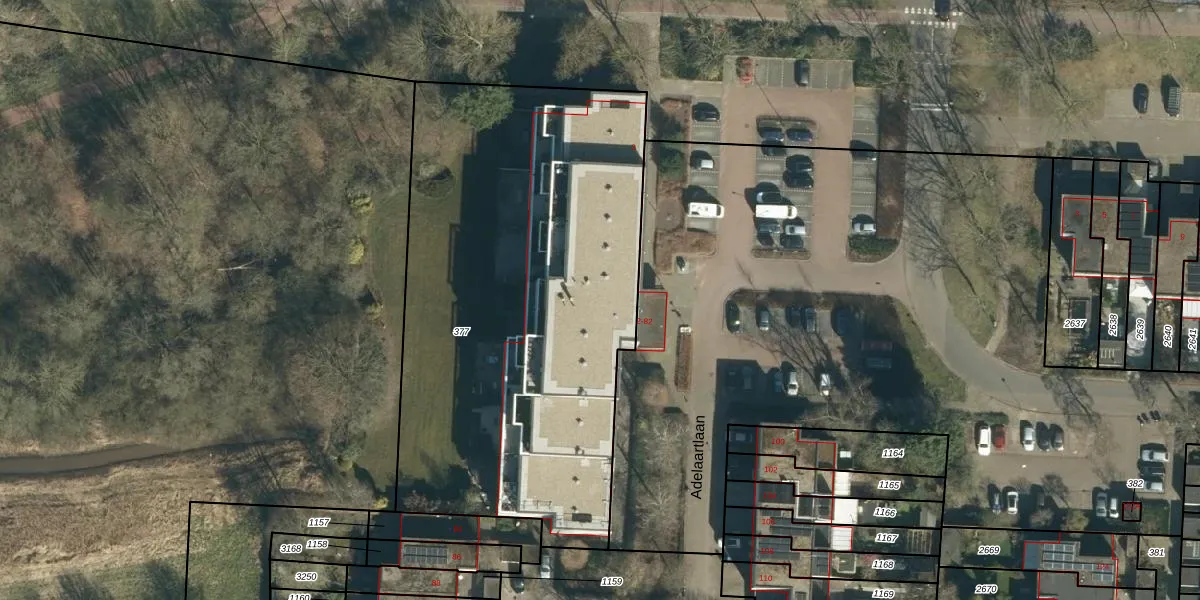 Adelaartlaan 36 is gelegen op kadastraal perceel GDP00F377. Deze kadastrale aanduiding is uniek en wordt gebruikt door het Kadaster om eigendomsrechten en andere zakelijke rechten vast te leggen. Het perceel maakt onderdeel uit van de kadastrale gemeente Geldrop.