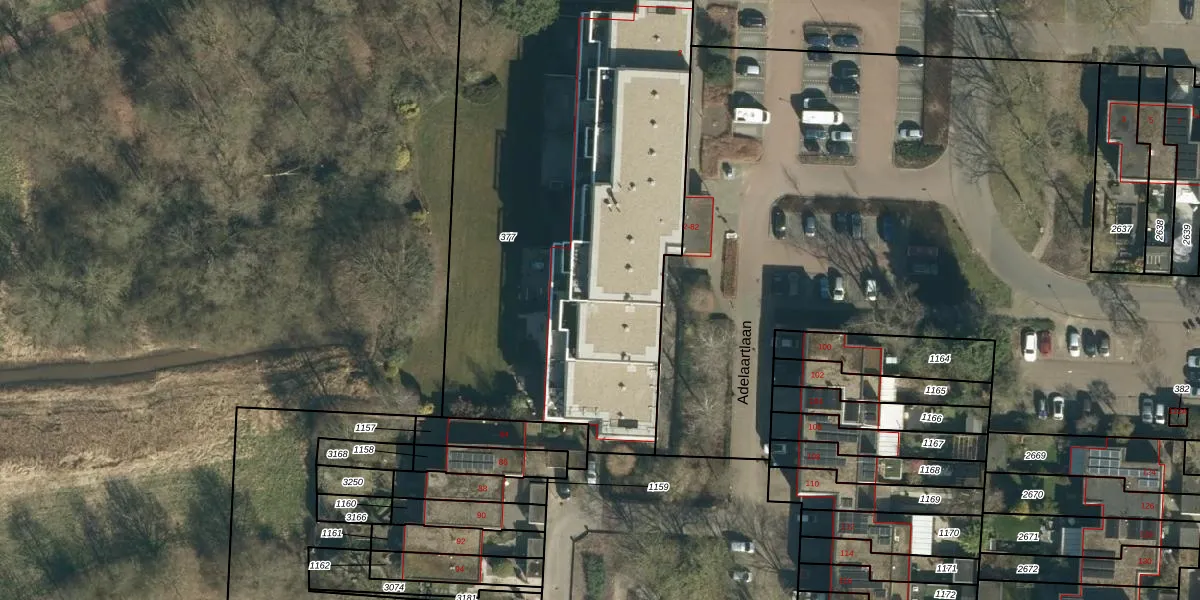 Adelaartlaan 48 is gelegen op kadastraal perceel GDP00F377. Deze kadastrale aanduiding is uniek en wordt gebruikt door het Kadaster om eigendomsrechten en andere zakelijke rechten vast te leggen. Het perceel maakt onderdeel uit van de kadastrale gemeente Geldrop.