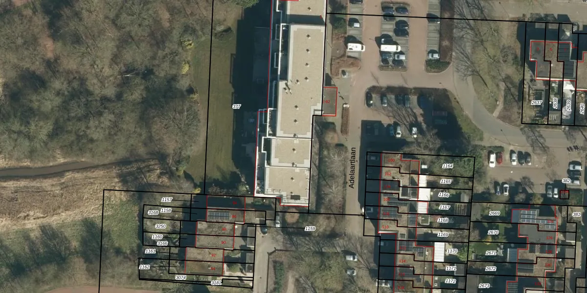 Adelaartlaan 50 is gelegen op kadastraal perceel GDP00F377. Deze kadastrale aanduiding is uniek en wordt gebruikt door het Kadaster om eigendomsrechten en andere zakelijke rechten vast te leggen. Het perceel maakt onderdeel uit van de kadastrale gemeente Geldrop.