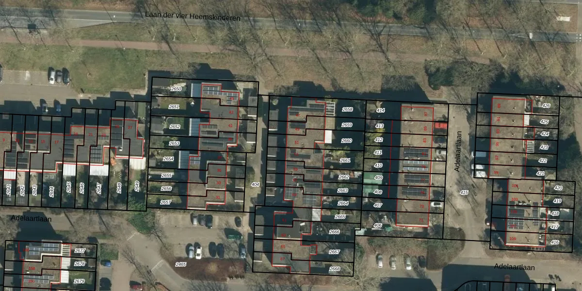 Adelaartlaan 51 is gelegen op kadastraal perceel GDP00F2660. Deze kadastrale aanduiding is uniek en wordt gebruikt door het Kadaster om eigendomsrechten en andere zakelijke rechten vast te leggen. Het perceel maakt onderdeel uit van de kadastrale gemeente Geldrop.