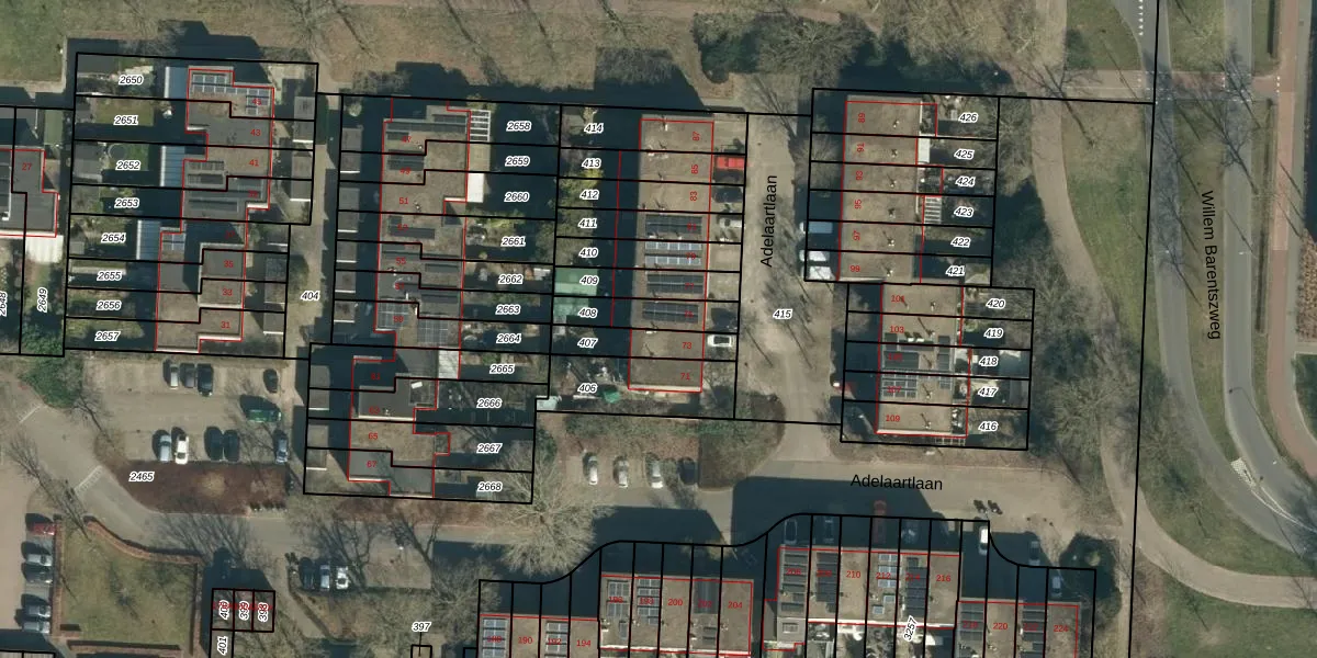 Adelaartlaan 75 is gelegen op kadastraal perceel GDP00F408. Deze kadastrale aanduiding is uniek en wordt gebruikt door het Kadaster om eigendomsrechten en andere zakelijke rechten vast te leggen. Het perceel maakt onderdeel uit van de kadastrale gemeente Geldrop.