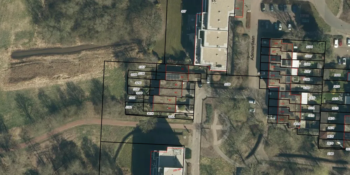 Gebruik de zoekbalk of klik op een perceel voor informatie over de adressen binnen dit perceel.