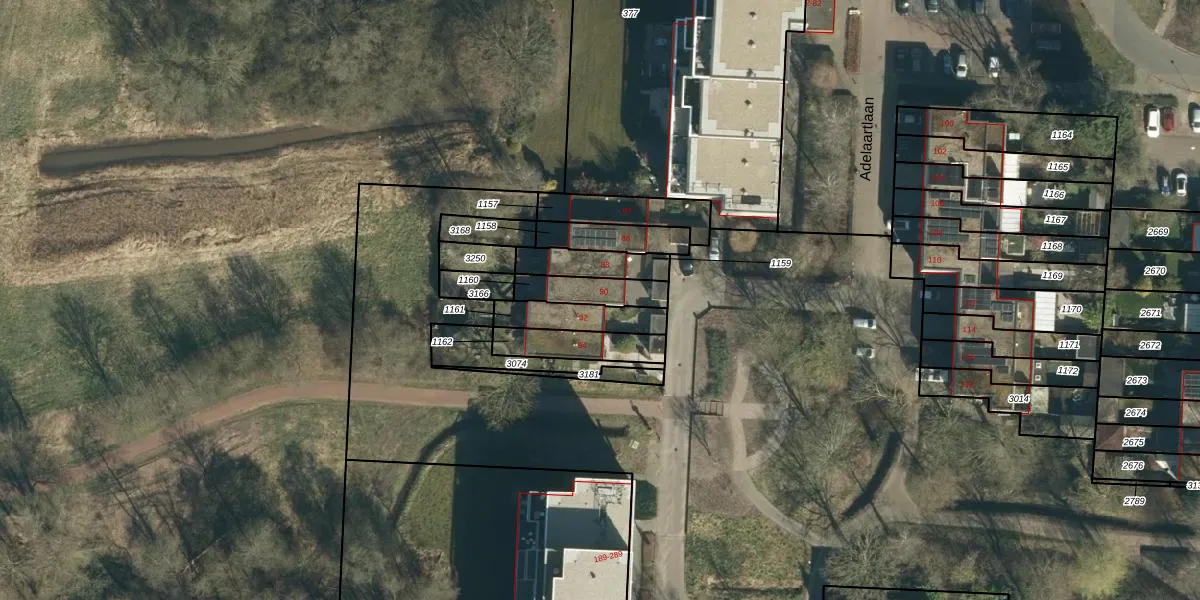 Adelaartlaan 90 is gelegen op kadastraal perceel GDP00F1160. Deze kadastrale aanduiding is uniek en wordt gebruikt door het Kadaster om eigendomsrechten en andere zakelijke rechten vast te leggen. Het perceel maakt onderdeel uit van de kadastrale gemeente Geldrop.