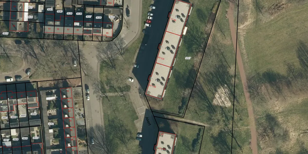 Het perceel waarop Akert 119 staat heeft een oppervlakte van 2335 m². Dit is een zeer groot perceel. De perceeloppervlakte wordt geregistreerd door het Kadaster. Gedetailleerde informatie over de maten van dit perceel kunt u vinden in het rapport Kadastrale kaart met maatvoering van Akert 119.