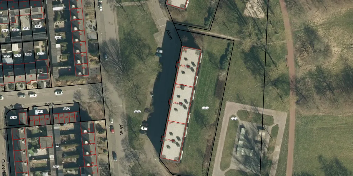 Het perceel waarop Akert 157 staat heeft een oppervlakte van 2335 m². Dit is een zeer groot perceel. De perceeloppervlakte wordt geregistreerd door het Kadaster. Gedetailleerde informatie over de maten van dit perceel kunt u vinden in het rapport Kadastrale kaart met maatvoering van Akert 157.