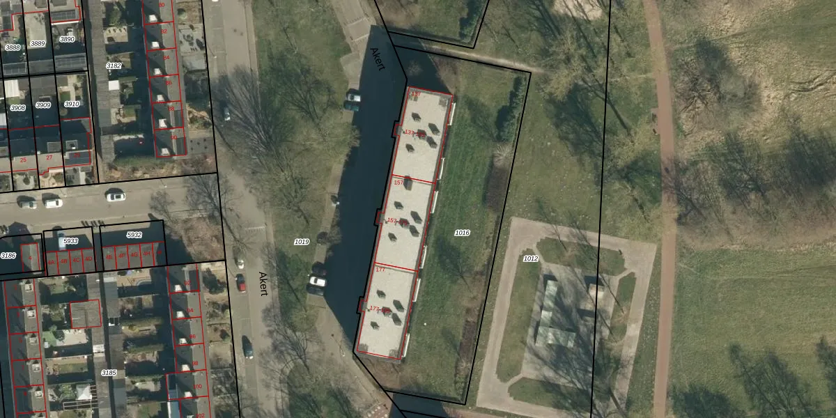 Het perceel waarop Akert 165 staat heeft een oppervlakte van 2335 m². Dit is een zeer groot perceel. De perceeloppervlakte wordt geregistreerd door het Kadaster. Gedetailleerde informatie over de maten van dit perceel kunt u vinden in het rapport Kadastrale kaart met maatvoering van Akert 165.