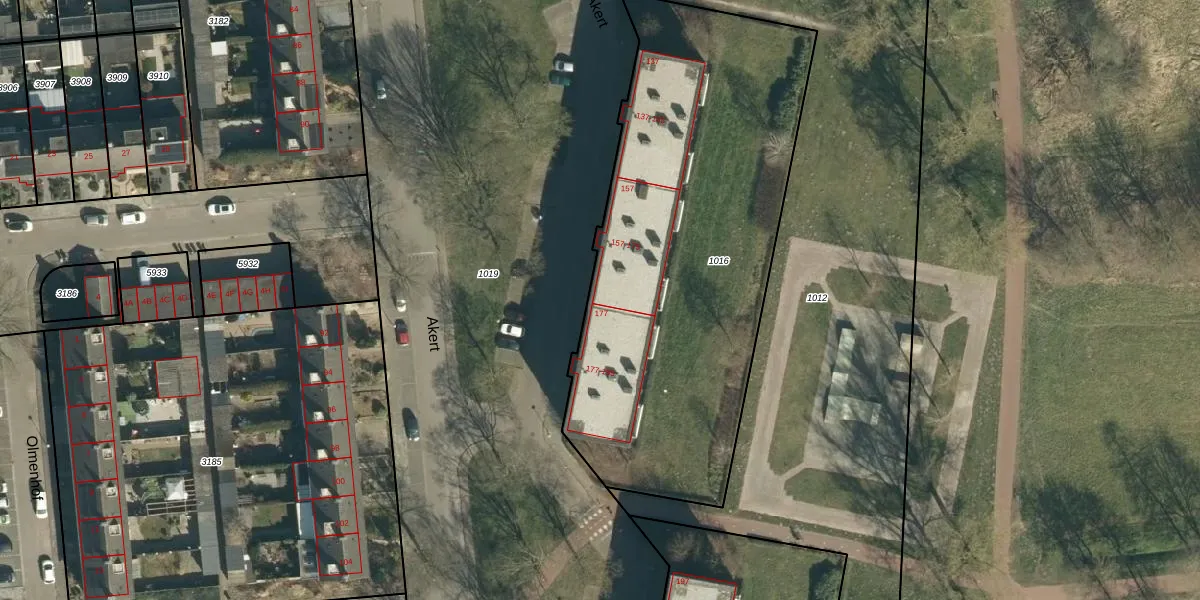 Het perceel waarop Akert 175 staat heeft een oppervlakte van 2335 m². Dit is een zeer groot perceel. De perceeloppervlakte wordt geregistreerd door het Kadaster. Gedetailleerde informatie over de maten van dit perceel kunt u vinden in het rapport Kadastrale kaart met maatvoering van Akert 175.