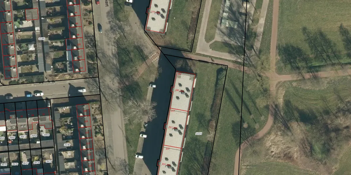 Het adres ligt op het perceel GDP00-E-1015, dat zich in de kadastrale gemeente Geldrop bevindt. De oppervlakte van het perceel is 2355 m². Dat is groter dan gemiddeld in Geldrop, waar de gemiddelde perceeloppervlakte op 1101,06 m² ligt. De grootste perceeloppervlakte in de kadastrale gemeente is 51,6 ha. De kleinste oppervlakte bedraagt 0 m². Op het perceel zijn 30 adressen aanwezig. De laatste wijziging in het de Basisregistratie Kadaster (BRK) was op 09-06-2009.