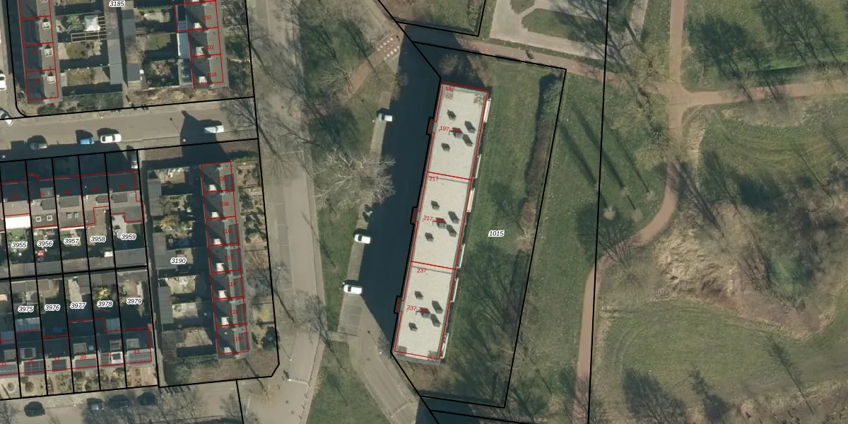 Het adres ligt op het perceel GDP00-E-1015, dat zich in de kadastrale gemeente Geldrop bevindt. De oppervlakte van het perceel is 2355 m². Dat is groter dan gemiddeld in Geldrop, waar de gemiddelde perceeloppervlakte op 1101,06 m² ligt. Het grootste perceel in de kadastrale gemeente is 51,6 ha. Het kleinste perceel heeft een oppervlakte van 0 m². Er zijn 30 adressen aanwezig op het perceel. In de Basisregistratie Kadaster (BRK) werden de grenzen van het perceel geregistreerd op 09-06-2009.