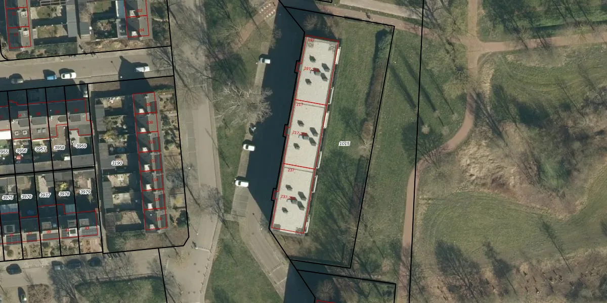 Het adres ligt op het perceel GDP00-E-1015, dat zich in de kadastrale gemeente Geldrop bevindt. De oppervlakte van het perceel is 2355 m². Dat is groter dan gemiddeld in Geldrop, waar de gemiddelde perceeloppervlakte op 1101,06 m² ligt. Het grootste perceel in de kadastrale gemeente is 51,6 ha. Het kleinste perceel heeft een oppervlakte van 0 m². Er zijn 30 adressen aanwezig op het perceel. In de Basisregistratie Kadaster (BRK) werden de grenzen van het perceel geregistreerd op 09-06-2009.