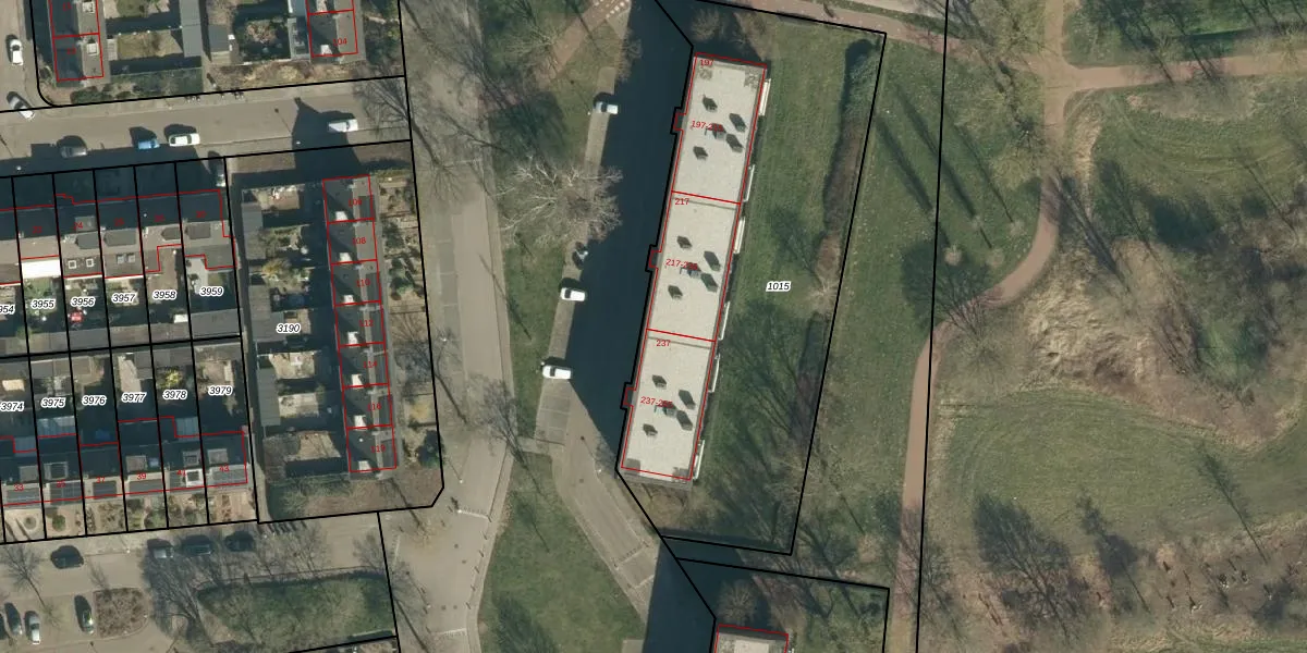 Het adres ligt op het perceel GDP00-E-1015, dat zich in de kadastrale gemeente Geldrop bevindt. De oppervlakte van het perceel is 2355 m². Dat is groter dan gemiddeld in Geldrop, waar de gemiddelde perceeloppervlakte op 1101,06 m² ligt. Het grootste perceel in de kadastrale gemeente is 51,6 ha. Het kleinste perceel heeft een oppervlakte van 0 m². Er zijn 30 adressen aanwezig op het perceel. In de Basisregistratie Kadaster (BRK) werden de grenzen van het perceel geregistreerd op 09-06-2009.