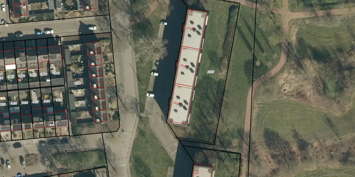 Het adres ligt op het perceel GDP00-E-1015, dat zich in de kadastrale gemeente Geldrop bevindt. De oppervlakte van het perceel is 2355 m². Dat is groter dan gemiddeld in Geldrop, waar de gemiddelde perceeloppervlakte op 1101,06 m² ligt. Het grootste perceel in de kadastrale gemeente is 51,6 ha. Het kleinste perceel heeft een oppervlakte van 0 m². Op het perceel zijn 30 adressen aanwezig. De huidige grenzen van het perceel zijn digitaal in de Basisregistratie Kadaster (BRK) geregistreerd op 09-06-2009.