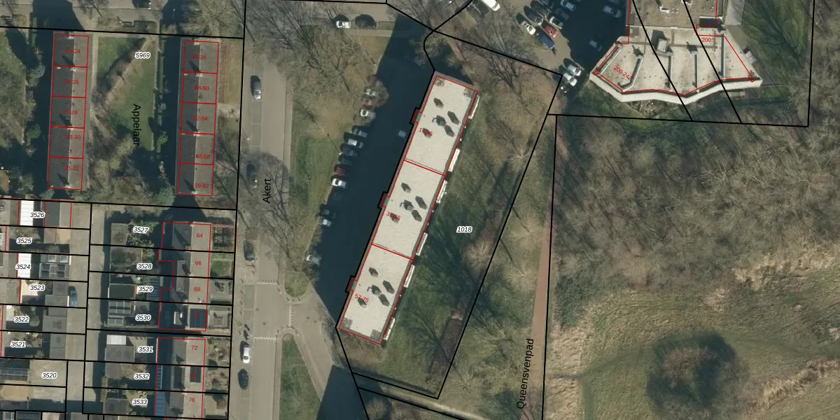 Het adres ligt op het perceel GDP00-E-1018, dat zich in de kadastrale gemeente Geldrop bevindt. De oppervlakte van het perceel is 2410 m². Dat is groter dan gemiddeld in Geldrop, waar de gemiddelde perceeloppervlakte op 1101,06 m² ligt. Het kleinste perceel in de kadastrale gemeente is 0 m² groot. De grootste perceeloppervlakte is 51,6 ha. Er zijn 30 adressen aanwezig op het perceel. In de Basisregistratie Kadaster (BRK) werden de grenzen van het perceel geregistreerd op 09-06-2009.