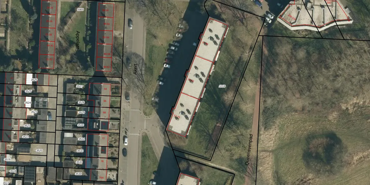 Het perceel waarop Akert 55 staat heeft een oppervlakte van 2410 m². Dit is een zeer groot perceel. De perceeloppervlakte wordt geregistreerd door het Kadaster. Gedetailleerde informatie over de maten van dit perceel kunt u vinden in het rapport Kadastrale kaart met maatvoering van Akert 55.