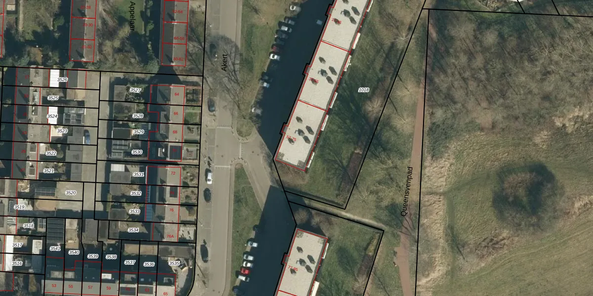 Het perceel waarop Akert 67 staat heeft een oppervlakte van 2410 m². Dit is een zeer groot perceel. De perceeloppervlakte wordt geregistreerd door het Kadaster. Gedetailleerde informatie over de maten van dit perceel kunt u vinden in het rapport Kadastrale kaart met maatvoering van Akert 67.