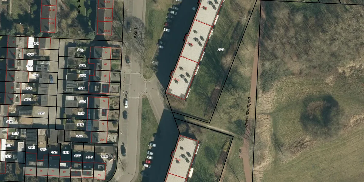 Het perceel waarop Akert 69 staat heeft een oppervlakte van 2410 m². Dit is een zeer groot perceel. De perceeloppervlakte wordt geregistreerd door het Kadaster. Gedetailleerde informatie over de maten van dit perceel kunt u vinden in het rapport Kadastrale kaart met maatvoering van Akert 69.