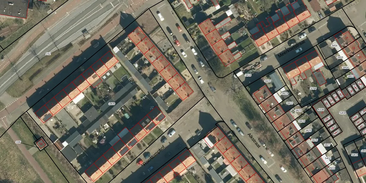 Het perceel waarop Alkstraat 15 staat heeft een oppervlakte van 4831 m². Dit is een zeer groot perceel. De perceeloppervlakte wordt geregistreerd door het Kadaster. Gedetailleerde informatie over de maten van dit perceel kunt u vinden in het rapport Kadastrale kaart met maatvoering van Alkstraat 15.