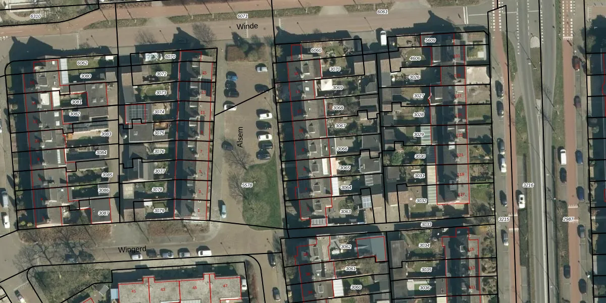 Gebruik de zoekbalk of klik op een perceel voor informatie over de adressen binnen dit perceel.