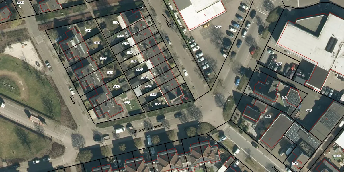 Gebruik de zoekbalk of klik op een perceel voor informatie over de adressen binnen dit perceel.