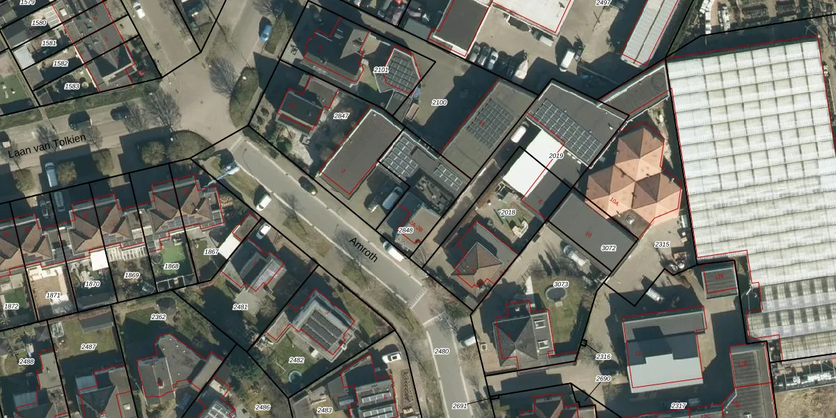 Het perceel waarop Amroth 2-B staat heeft een oppervlakte van 355 m². Dit is een groot perceel. De perceeloppervlakte wordt geregistreerd door het Kadaster. Gedetailleerde informatie over de maten van dit perceel kunt u vinden in het rapport Kadastrale kaart met maatvoering van Amroth 2-B.