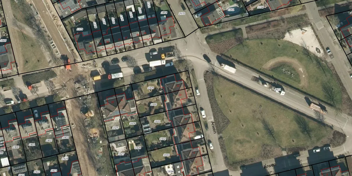 Het perceel waarop Arwen 12 staat heeft een oppervlakte van 326 m². Dit is een groot perceel. De perceeloppervlakte wordt geregistreerd door het Kadaster. Gedetailleerde informatie over de maten van dit perceel kunt u vinden in het rapport Kadastrale kaart met maatvoering van Arwen 12.