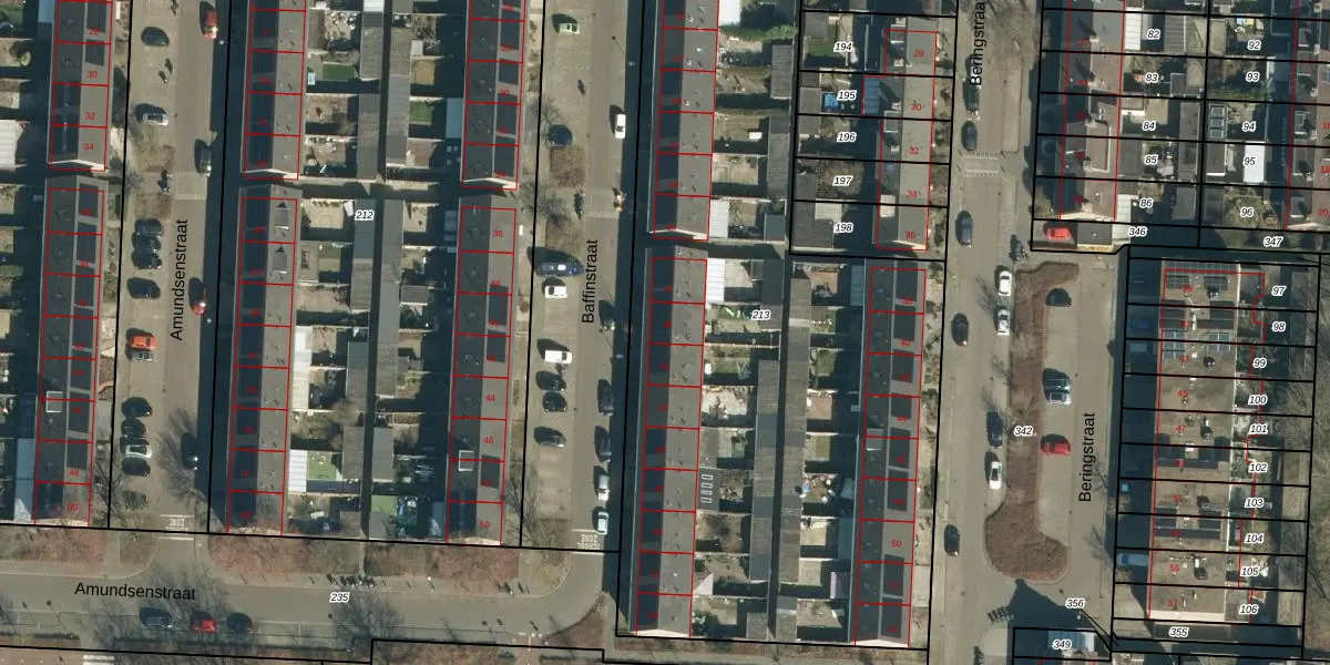 Het perceel waarop Baffinstraat 39 staat heeft een oppervlakte van 4137 m². Dit is een zeer groot perceel. De perceeloppervlakte wordt geregistreerd door het Kadaster. Gedetailleerde informatie over de maten van dit perceel kunt u vinden in het rapport Kadastrale kaart met maatvoering van Baffinstraat 39.