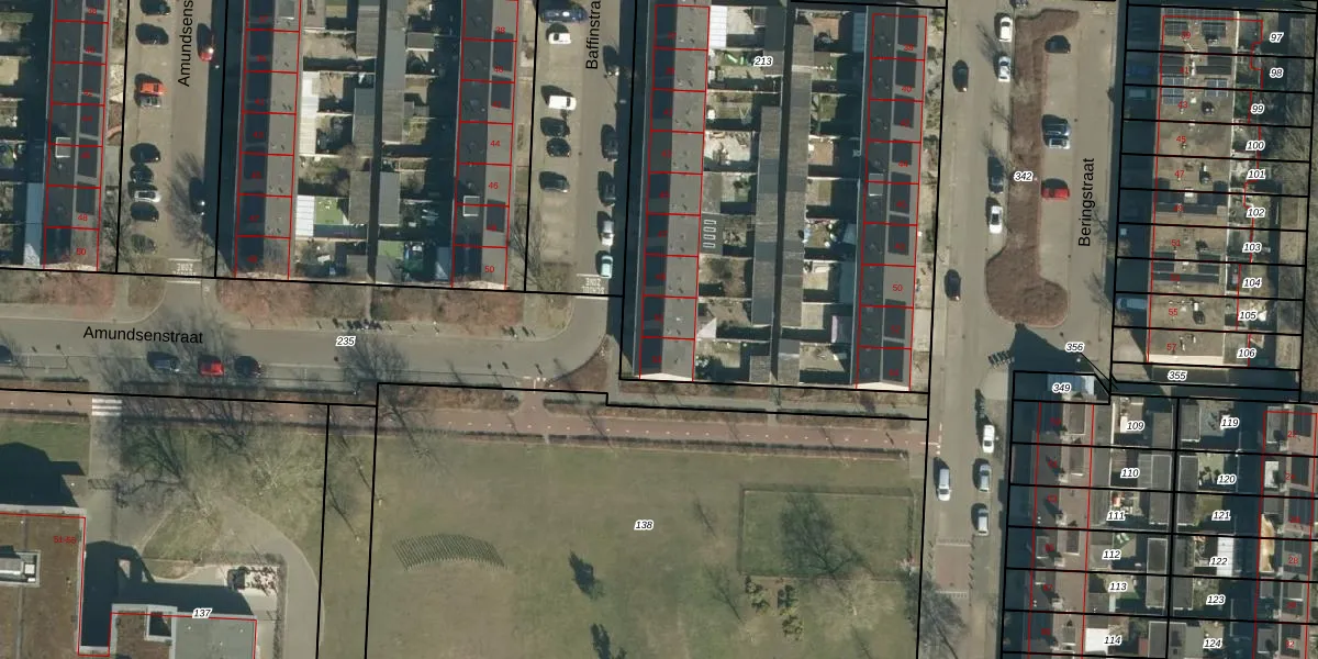 Het perceel waarop Baffinstraat 51 staat heeft een oppervlakte van 4137 m². Dit is een zeer groot perceel. De perceeloppervlakte wordt geregistreerd door het Kadaster. Gedetailleerde informatie over de maten van dit perceel kunt u vinden in het rapport Kadastrale kaart met maatvoering van Baffinstraat 51.