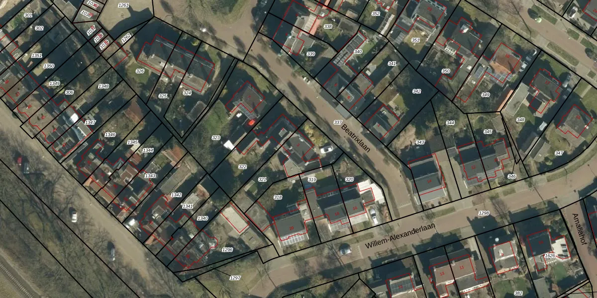 Het perceel waarop Beatrixlaan 3 staat heeft een oppervlakte van 400 m². Dit is een groot perceel. De perceeloppervlakte wordt geregistreerd door het Kadaster. Gedetailleerde informatie over de maten van dit perceel kunt u vinden in het rapport Kadastrale kaart met maatvoering van Beatrixlaan 3.