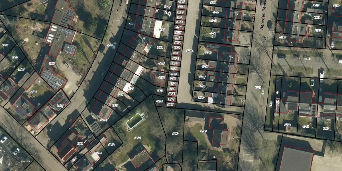 Gebruik de zoekbalk of klik op een perceel voor informatie over de adressen binnen dit perceel.