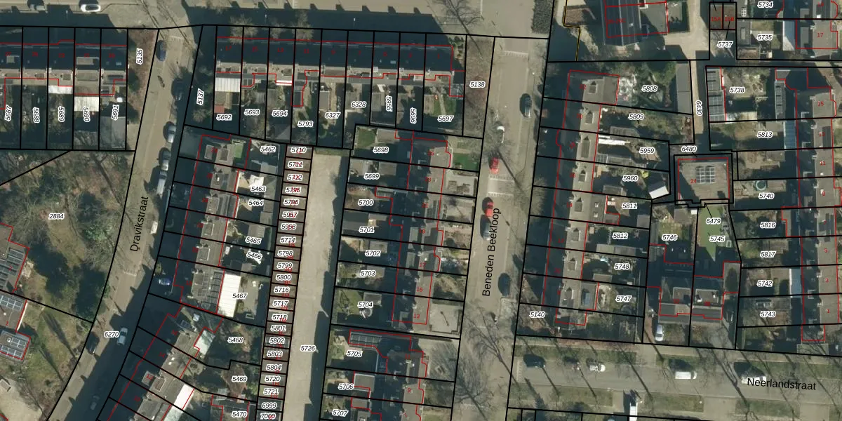 Beneden Beekloop 21 is gelegen op kadastraal perceel GDP00D5700. Deze kadastrale aanduiding is uniek en wordt gebruikt door het Kadaster om eigendomsrechten en andere zakelijke rechten vast te leggen. Het perceel maakt onderdeel uit van de kadastrale gemeente Geldrop.