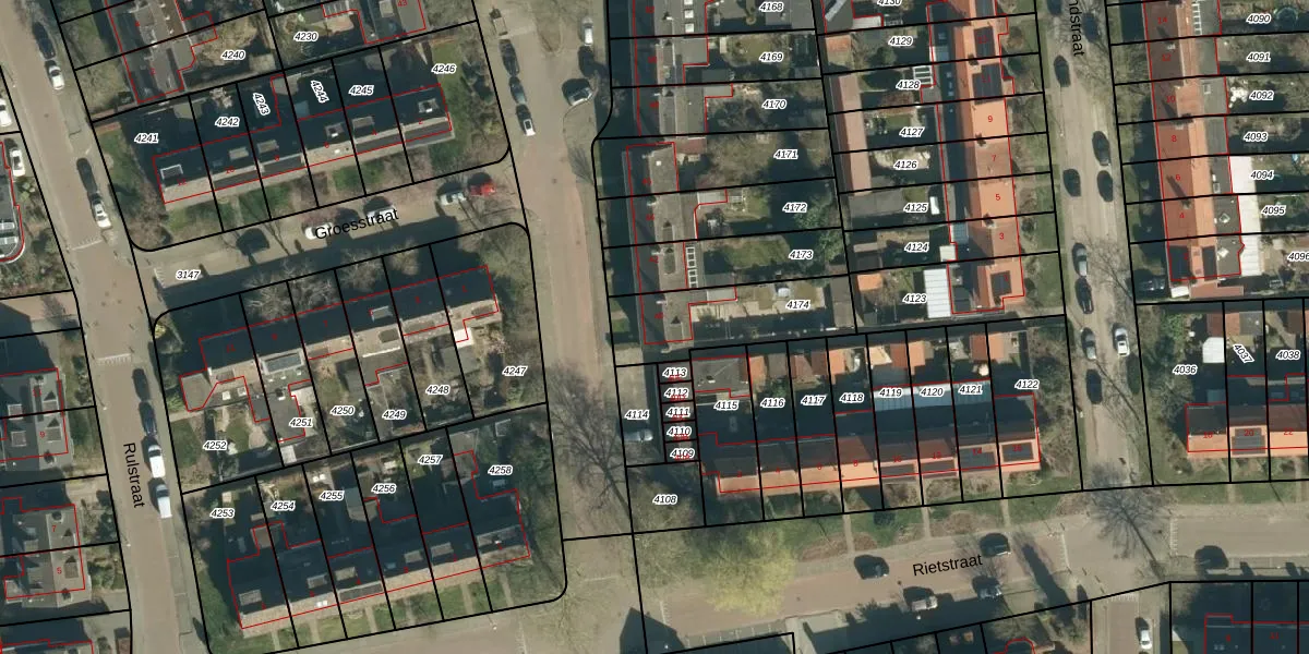 Gebruik de zoekbalk of klik op een perceel voor informatie over de adressen binnen dit perceel.