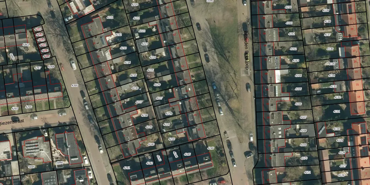 Beneden Beekloop 49 is gelegen op kadastraal perceel GDP00D4227. Deze kadastrale aanduiding is uniek en wordt gebruikt door het Kadaster om eigendomsrechten en andere zakelijke rechten vast te leggen. Het perceel maakt onderdeel uit van de kadastrale gemeente Geldrop.