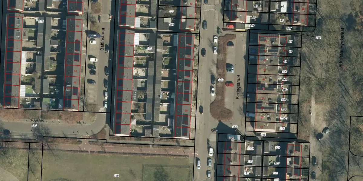 Het perceel waarop Beringstraat 46 staat heeft een oppervlakte van 4137 m². Dit is een zeer groot perceel. De perceeloppervlakte wordt geregistreerd door het Kadaster. Gedetailleerde informatie over de maten van dit perceel kunt u vinden in het rapport Kadastrale kaart met maatvoering van Beringstraat 46.