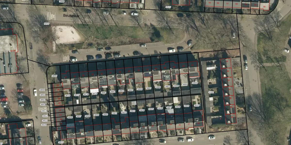 Het perceel waarop Beukelaar 32 staat heeft een oppervlakte van 178 m². Dit is een middelgroot perceel. De perceeloppervlakte wordt geregistreerd door het Kadaster. Gedetailleerde informatie over de maten van dit perceel kunt u vinden in het rapport Kadastrale kaart met maatvoering van Beukelaar 32.