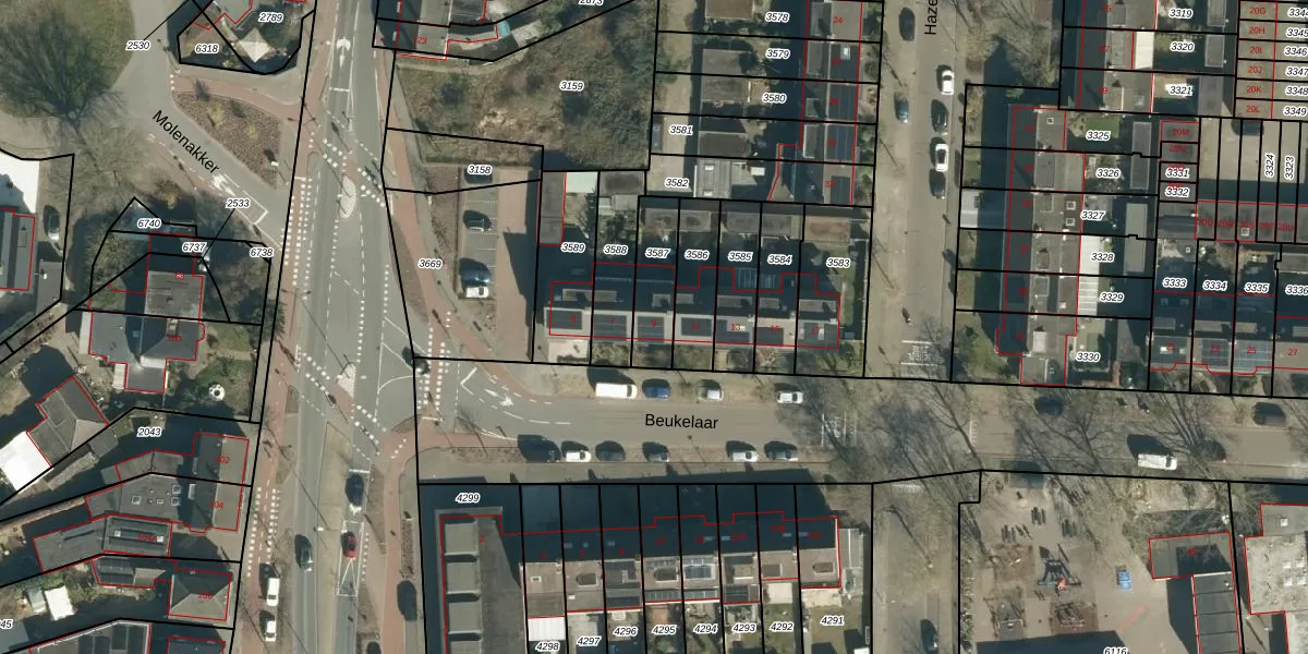 Het perceel waarop Beukelaar 9 staat heeft een oppervlakte van 166 m². Dit is een middelgroot perceel. De perceeloppervlakte wordt geregistreerd door het Kadaster. Gedetailleerde informatie over de maten van dit perceel kunt u vinden in het rapport Kadastrale kaart met maatvoering van Beukelaar 9.
