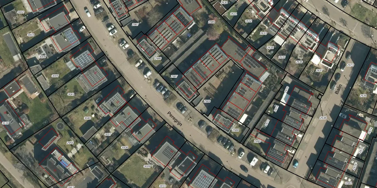 Gebruik de zoekbalk of klik op een perceel voor informatie over de adressen binnen dit perceel.