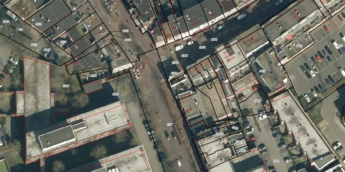 Bogardeind 1 is gelegen op kadastraal perceel GDP00D6708. Deze kadastrale aanduiding is uniek en wordt gebruikt door het Kadaster om eigendomsrechten en andere zakelijke rechten vast te leggen. Het perceel maakt onderdeel uit van de kadastrale gemeente Geldrop.