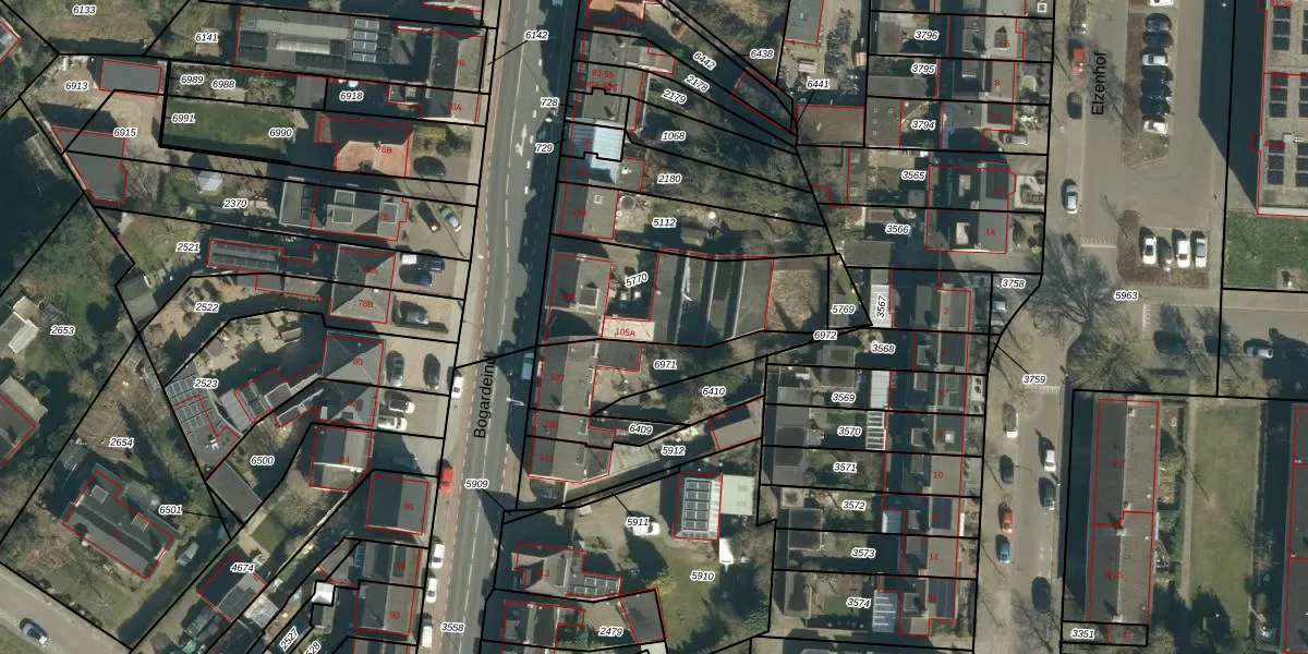 Bogardeind 105-A is gelegen op kadastraal perceel GDP00D5770. Deze kadastrale aanduiding is uniek en wordt gebruikt door het Kadaster om eigendomsrechten en andere zakelijke rechten vast te leggen. Het perceel maakt onderdeel uit van de kadastrale gemeente Geldrop.